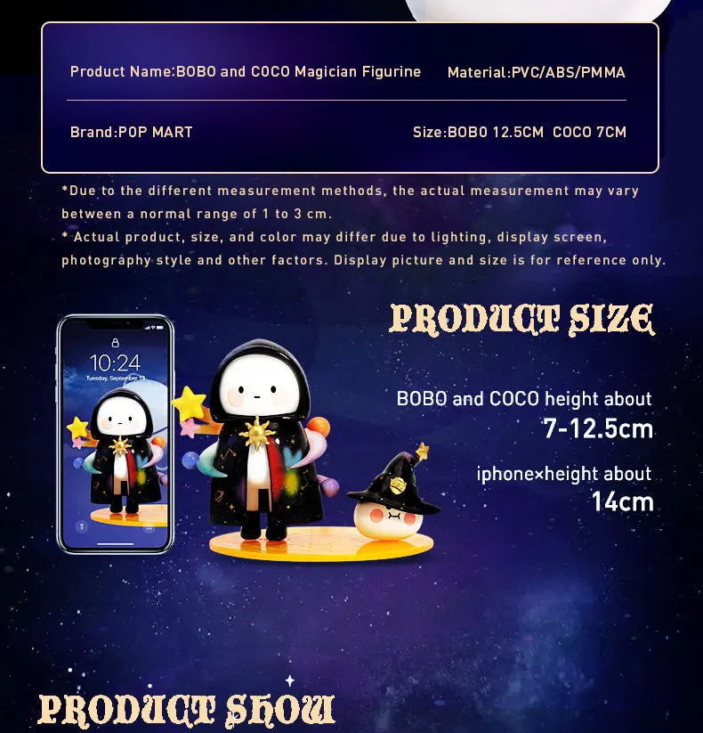 POP MART BOBO and COCO Magician Figurine Collectible Cute Action Kawaii Gift Kid Plastic Toys Figure