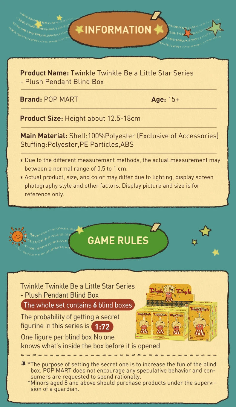 POP MART Twinkle Twinkle Be a Little Star Series - Plush Pendant Blind Box 1PC/6PCS Blind Box POPMART Action Figure